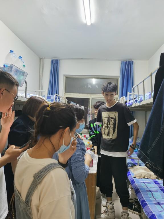 9月3日晚,数学科学学院班子成员朱丽、姜雪,辅导员宋金锦、刘晶,新生班主任吴磊、李慧、郭亚楠、陈娟,携学生干部前往数学科学学院2021级应数和信算专业宿舍慰问新生。