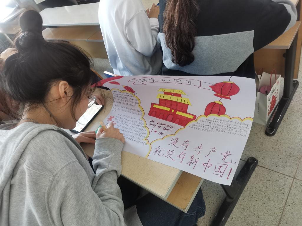 活动上,各团支部书记组织同学们集体学习习近平总书记“七一”重要讲话精神,重温庆祝中国共产党成立100周年大会上共青团员和少先队员代表的集体献词,再次感受“请党放心,强国有我!”郑重有力的誓言;之后学生们以“请党放心,强国有我”为主题制作了手抄报,表达新时代中国青年的志气、骨气、底气。