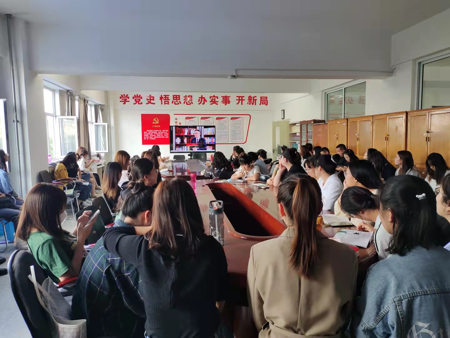 2021年9月是我市第38个民族团结进步活动月。为深入贯彻落实中共中央办公厅、国务院办公厅《关于全面深入持久开展民族团结进步创建工作铸牢中华民族共同体意识的意见》,深入学习贯彻中央民族工作会议精神,学习领会习近平总书记关于民族工作的重要论述和习近平总书记在庆祝中国共产党成立100周年墙柱大会上的重要讲话精神以及对内蒙古重要讲话、重要批示精神,9月16日下午,外国语学院党总支开展了“加强中华儿女大团结,铸牢中华民族共同体意识”主题党日活动。本次活动由外国语学院教工党支部书记郭勇丽主持,外国语学院全体师生党员参加了主题党日活动。