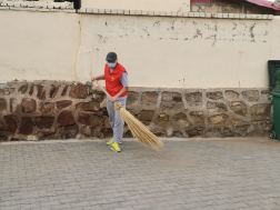 他们帮忙打扫庭院,不怕脏、不怕苦、不怕累,以劳动为荣,乐在其中。