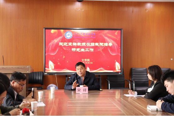 10月9日上午,东北师范大学宋祥教授应文学院邀请对研究生工作做出指导。文学院院长李国德、中文系主任田中元教授、专硕导师代表与所有研究生参加了此次会议。