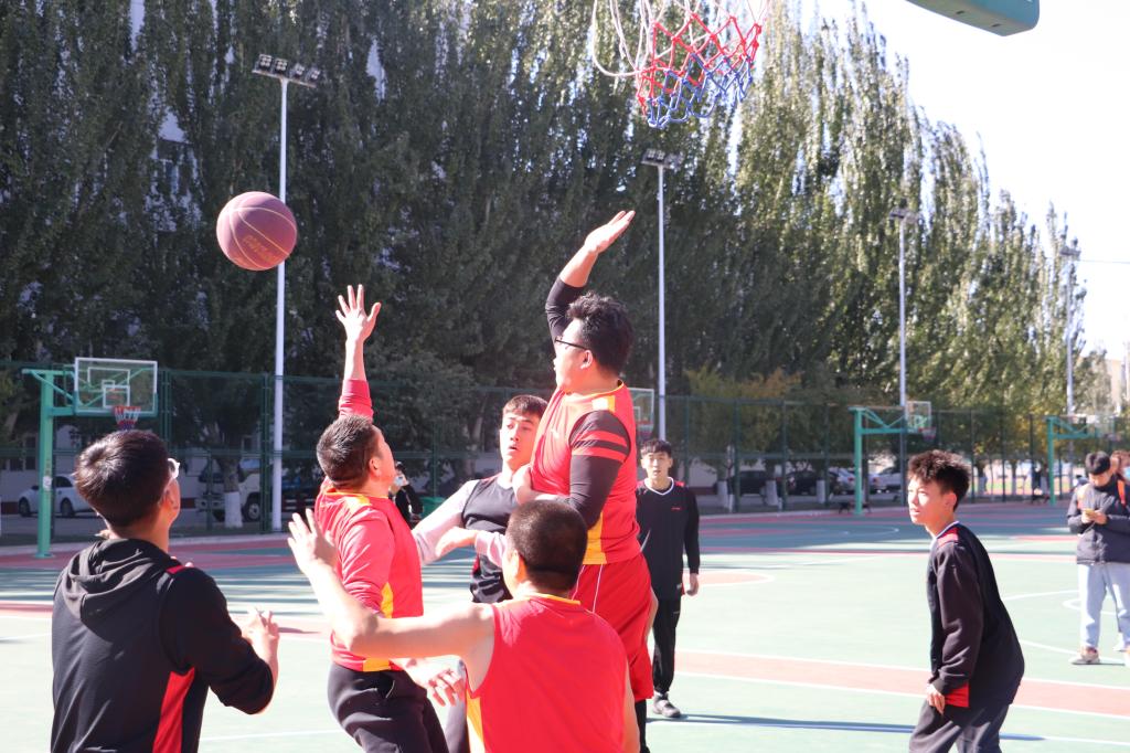 本次比赛在南苑篮球场进行,采取半场赛制。由崔家瑜、安昱光、宋宇昊、栾宇林、邱宏伟等同学组成的学生队对抗由张骁勇、张高峰、马学林、张旭、陈万钧等老师组成的教师队。