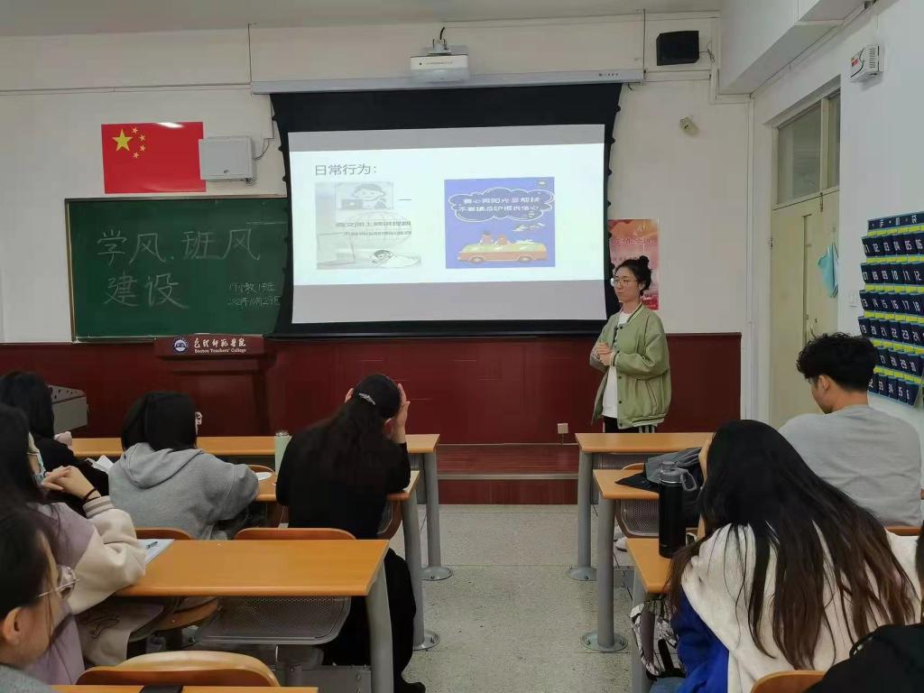 班会均有四项重要议程。首先,班主任宣读了《教育科学学院2021年加强学风建设实施方案》,从课堂纪律、教室卫生、文明礼仪、宿舍卫生进行逐条解读,强调了让同学们按时上课、不迟到、不早退,不在教室内吃东西,每日保持宿舍卫生等方面,教育引导学生养好良好学习和生活习惯。其次,班主任带领全体学生学习包头师范学院大学生行为规范“十要十不要”,让学生铭记在心,以“十要十不要”规范日常行为。随后,班主任均强调在学业方面应注意的问题,临近期中,要合理规划学习时间,不要期末突击复习。最后,班主任着重强调了近期疫情防控的问题,非必要不离校,在校期间佩戴好口罩,不聚集、不隐瞒行程轨迹,不造谣、不传谣,不在微博、微信、朋友圈转载或发表不当言论,同时也要求班干部和宿舍长积极发挥引领带头作用,重点关注学生心理动态,及时掌握学生思想动态。